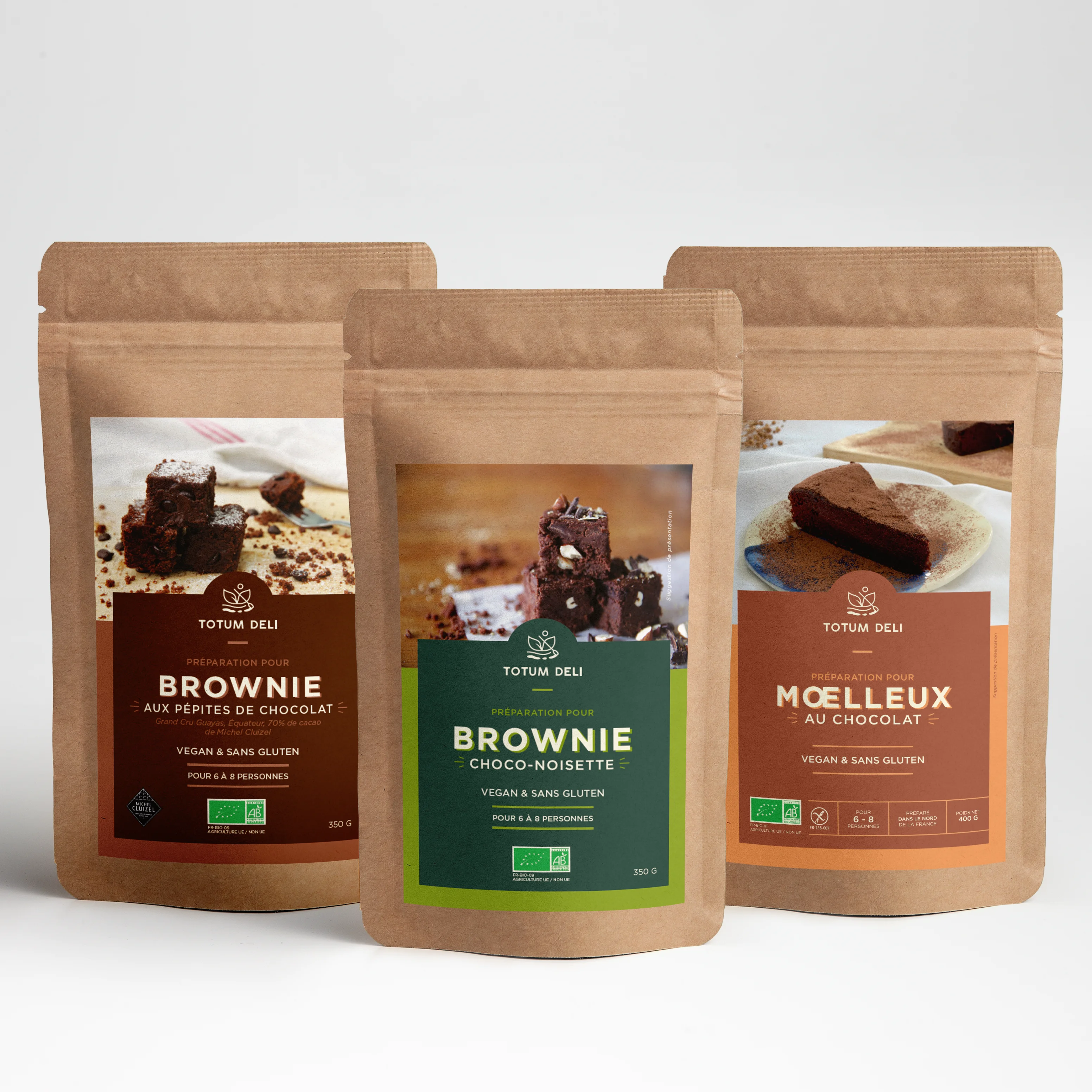 En parallèle, nous développons d’incroyables préparations pour pâtisseries sans gluten. Avec les préparations Totum Deli, nous avons réinventé les recettes des gâteaux les plus appréciés en les végétalisant (brownie, moelleux au chocolat, gâteau aux amandes, petit sablés aux amandes). Mais comme on pense à tous les gourmands nous vous offrons aussi la possibilité de les réaliser en version traditionnelle !